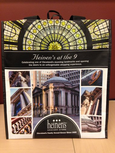Heinen’s Cleveland Tote Bag: Flat Art for All Sides (front, side, back, side)